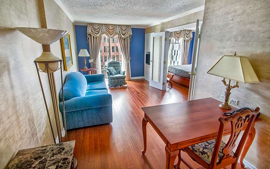 This suite has a cable TV, seating area and private entrance.