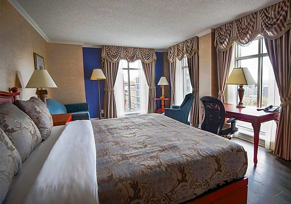 The air-conditioned suite features 1 bedroom and 1 bathroom with a bath or a shower and a hairdryer. The suite provides soundproof walls, a coffee machine, a dining area, a flat-screen TV with cable channels, as well as city views. The unit offers 1 bed.